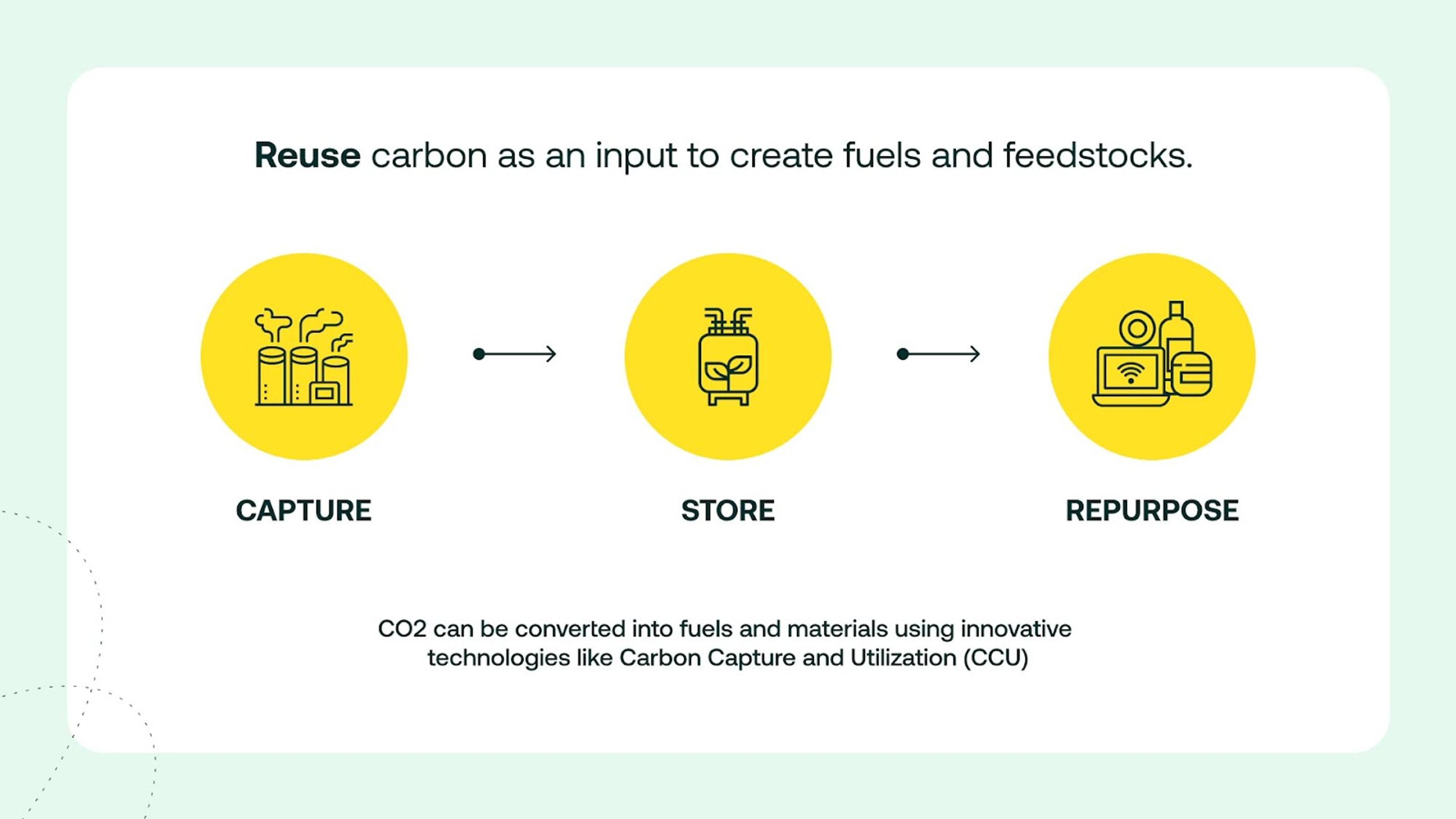 - Recycle carbon through a perpetual cycle where carbon is converted into new products in a closed loop.