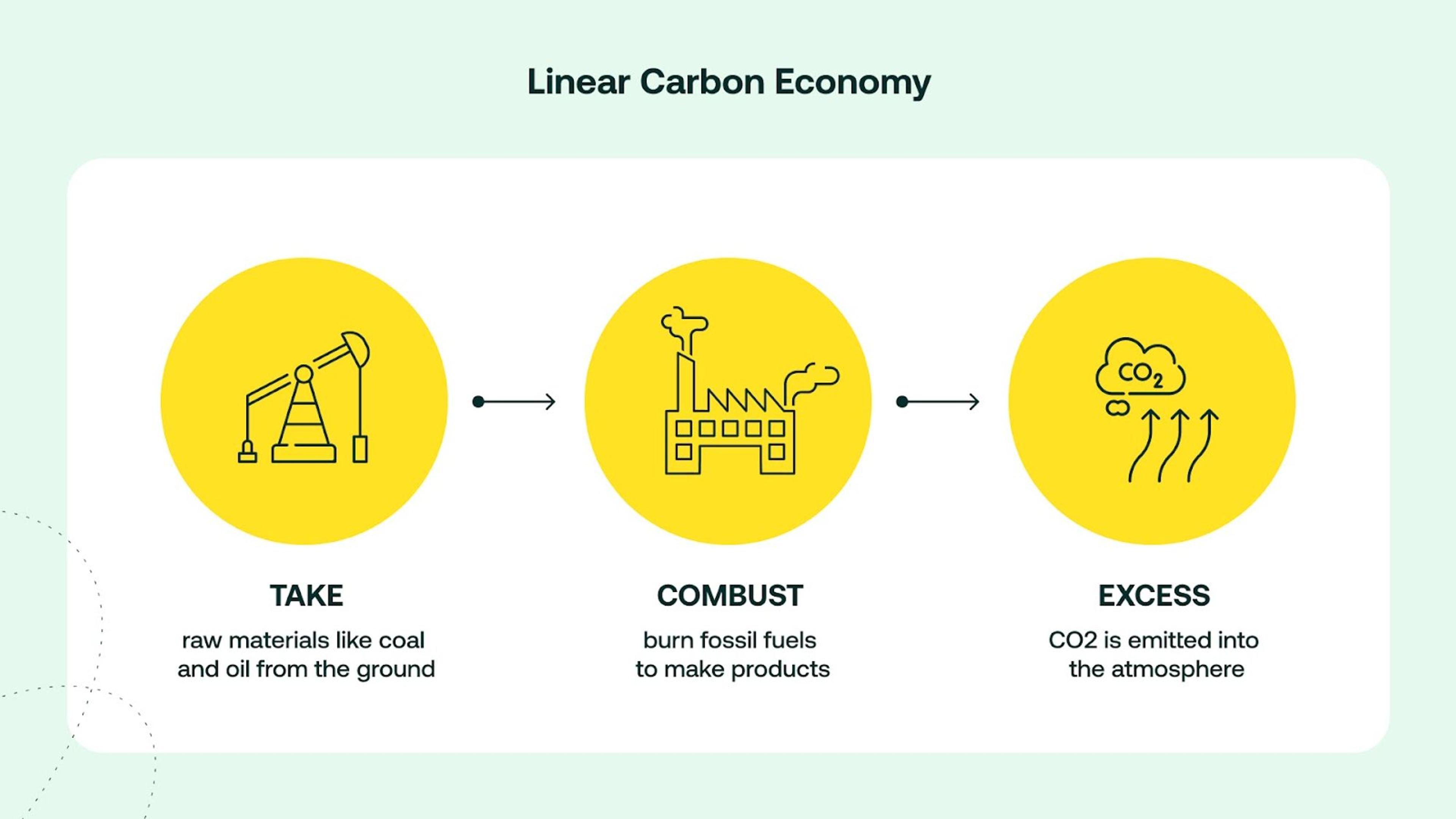 Historically, we have followed a linear carbon economic system, taking coal, oil and gas from the ground, using it and burning it which results in the CO2 accumulating in the atmosphere without it being used again.